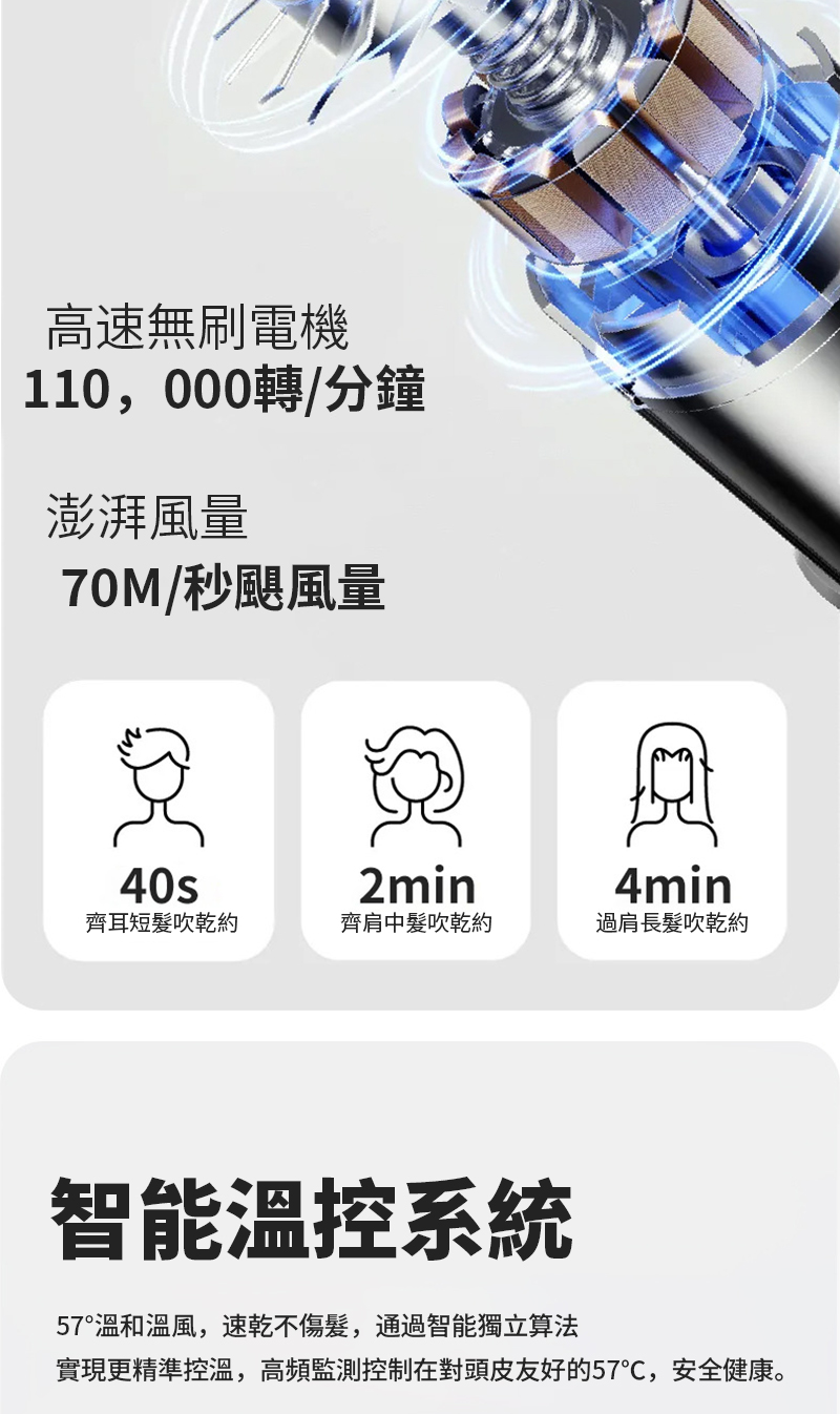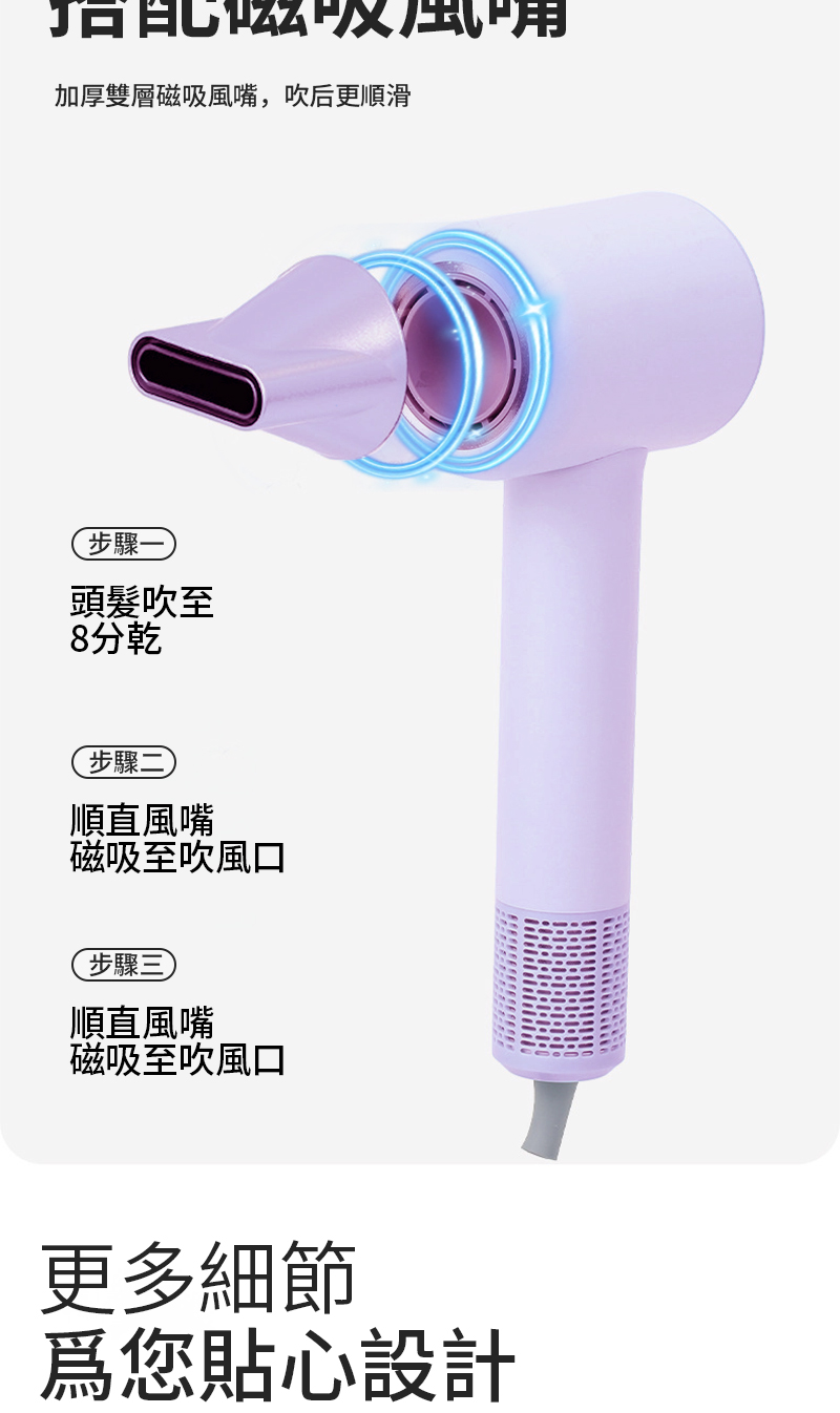 小巧便攜 速乾高效 護髮功能好 溫度控制智慧 噪音低 使用安全 操作便利 外觀設計美觀