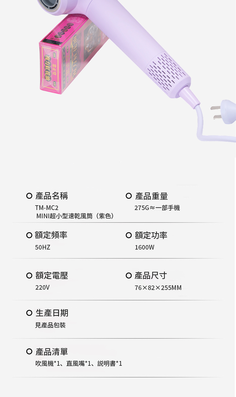 TM-MC2 Mini超小型速乾風筒(紫色)