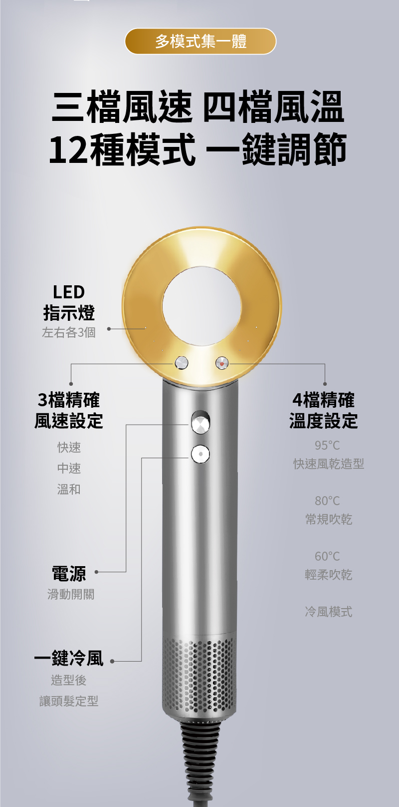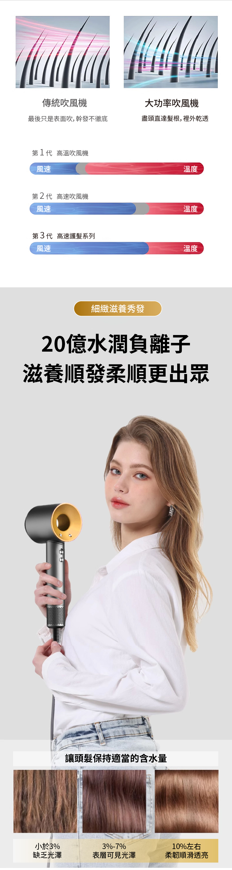 高速馬達 保護頭髮 三檔風速 四檔溫度 速乾造型 一步到位